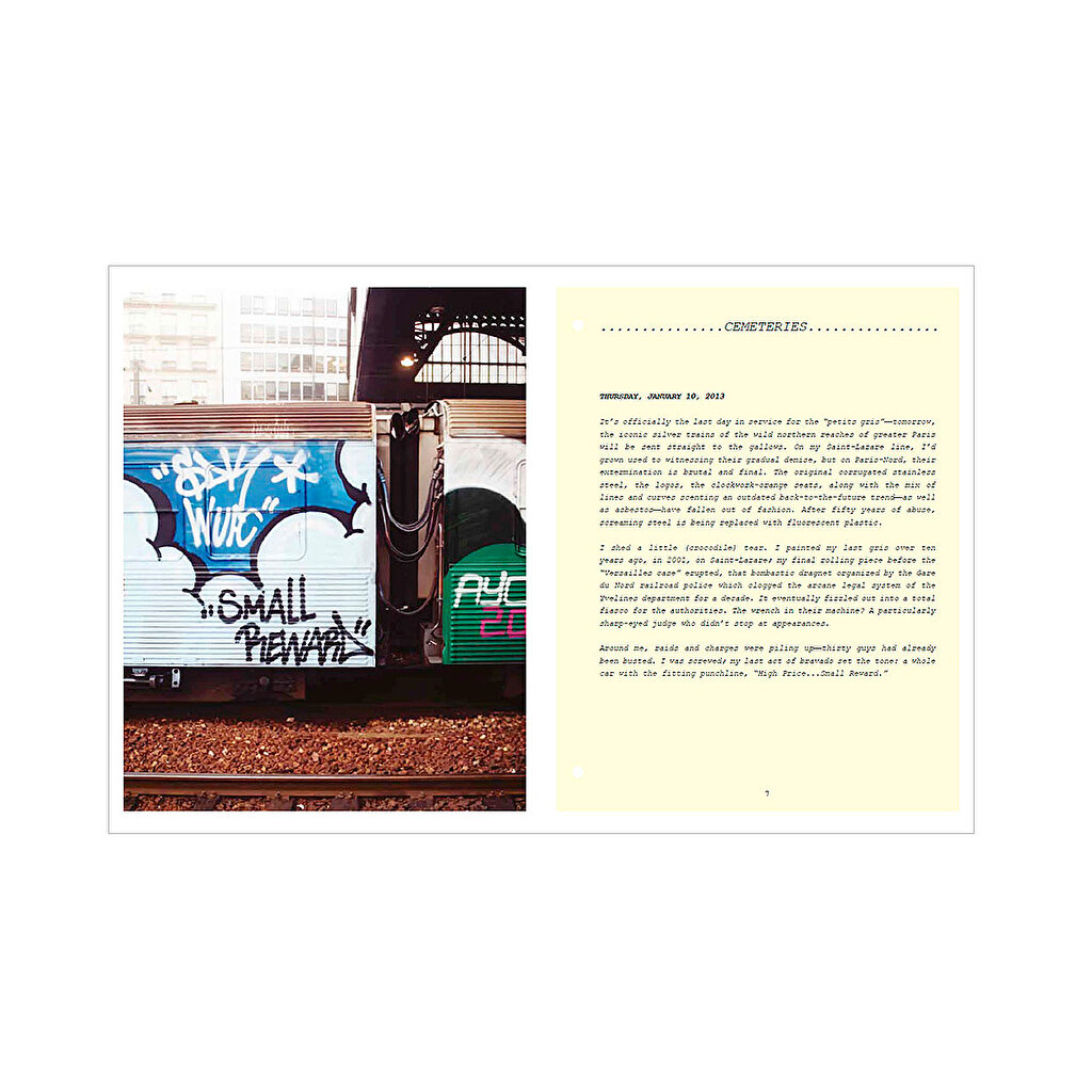 Boken är upplagd som en loggbok där Olivier Scuro går tillbaka till 1990-talets början och berättar historien genom omfattande arkivmaterial. Här finns mängder av bilder på målningar av Opak, Inxs, Honet, Pum, Fancie, Riot, Sime, Milk, Poes, Chill, Acid79, Skeme och många fler. Det är en mix av urbex, nostalgi, adrenalinfyllda missions – och framför allt renodlad graffiti.