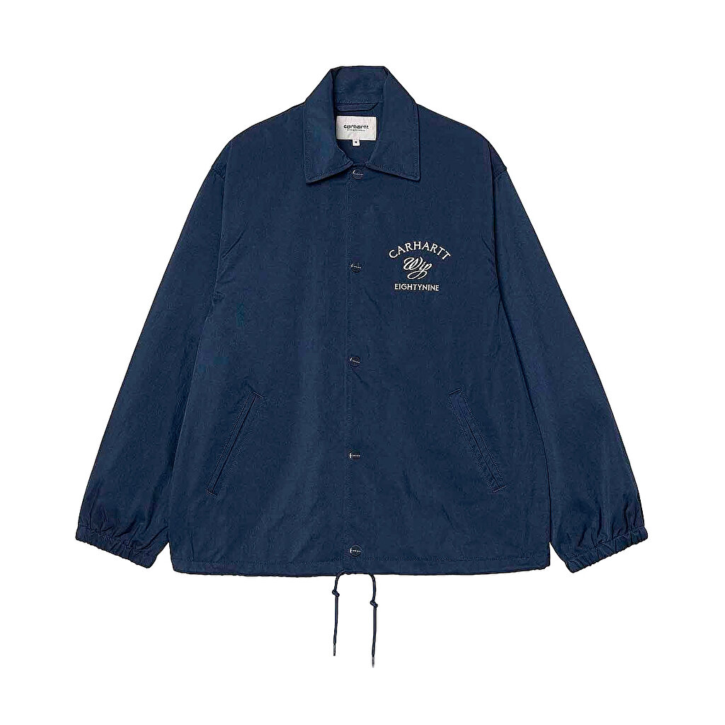 Carhartt WIP Eightynine Coach Jacket, Jupiter/White är en lätt och stilren jacka med klassisk coach-silhuett. Den är tillverkad i medeltung nyloncanvas utan foder, vilket gör den smidig och perfekt som ett lätt ytterlager.