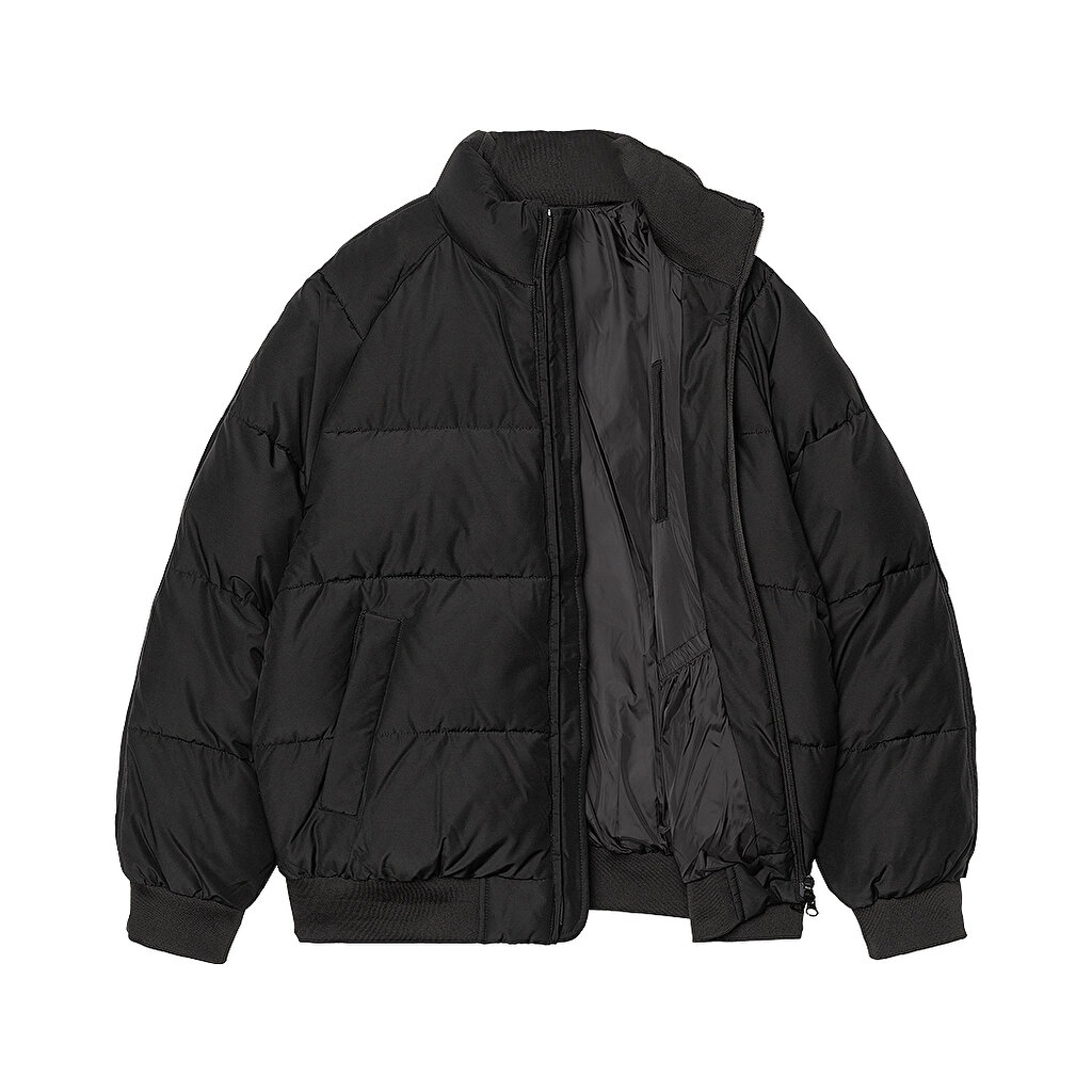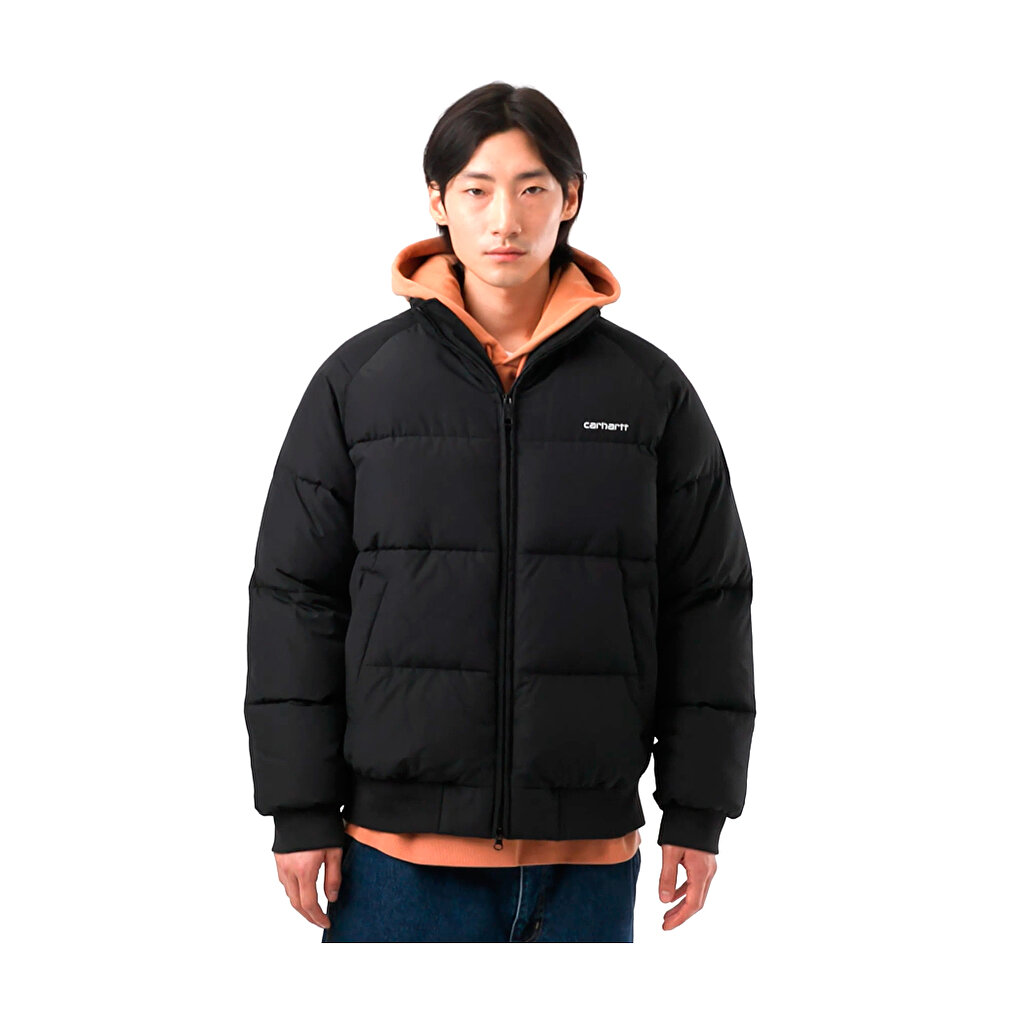 Carhartt WIP Nebraska Jacket, Black/White är tillverkad av lättviktigt poly-bomullstyg som är vattenavvisande, perfekt för den svanka vintern som består av regn och snö med andra ord.