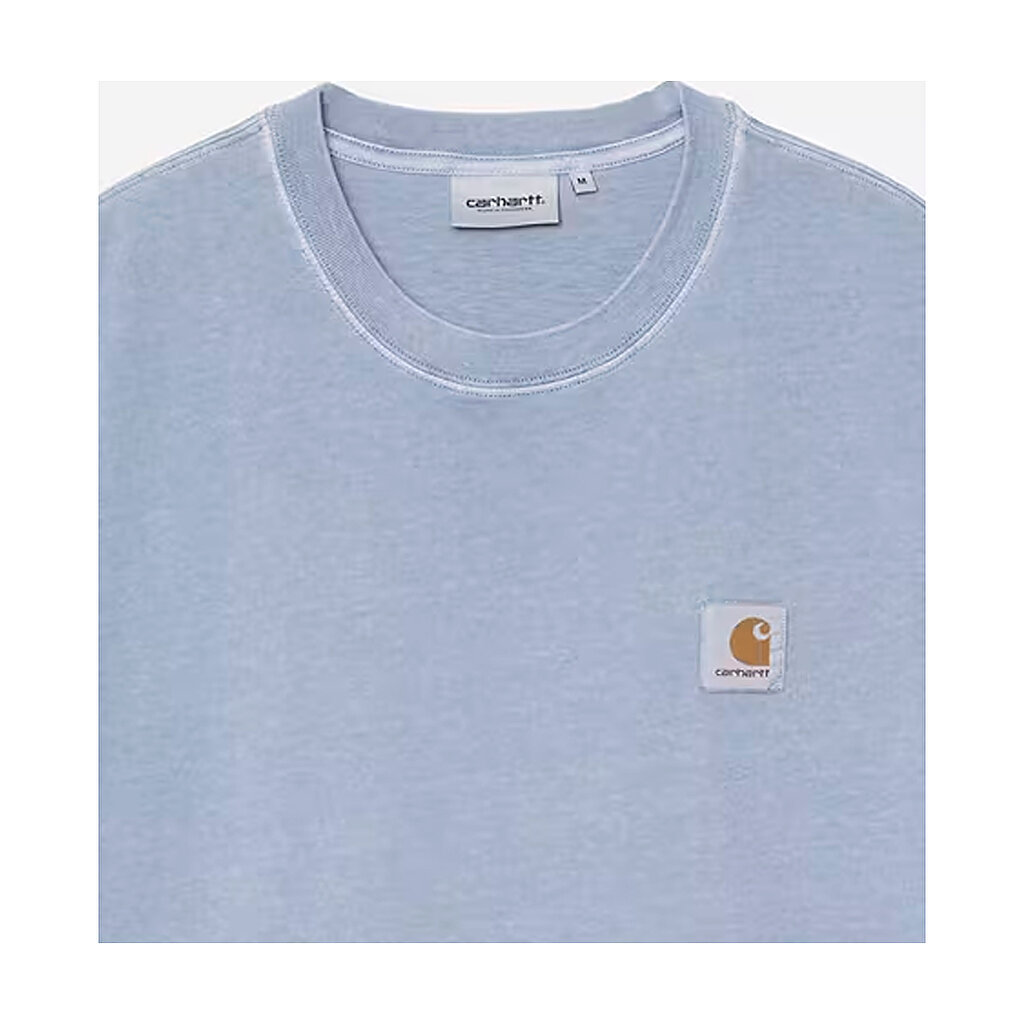 Plagget är garment-dyed, vilket ger tyget en extra mjuk finish och en mer nyanserad färg med subtilt djup. På bröstet sitter Carhartts klassiska Square Label, vars ton har dämpats av färgningsprocessen för ett mer inarbetat och autentiskt uttryck.