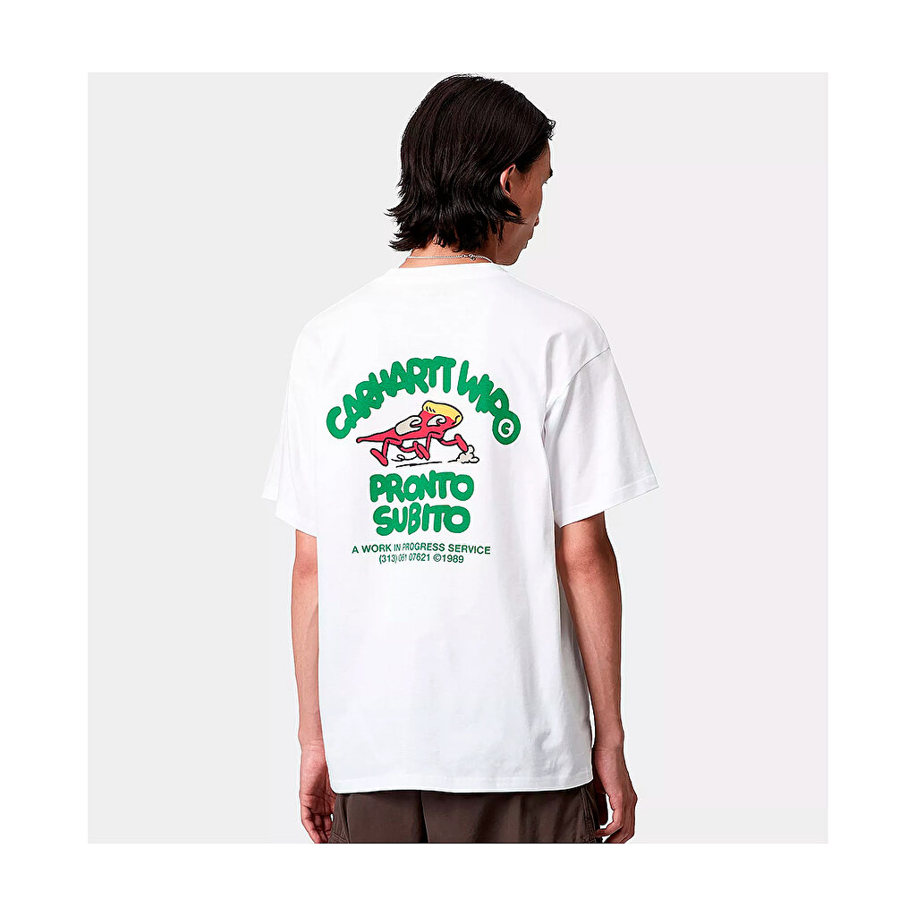 Carhartt WIP S/S Pronto T-Shirt i färgen White har en lös passform och är tillverkad av en lätt bomullsjersey. Grafiska tryck syns fram och bak.