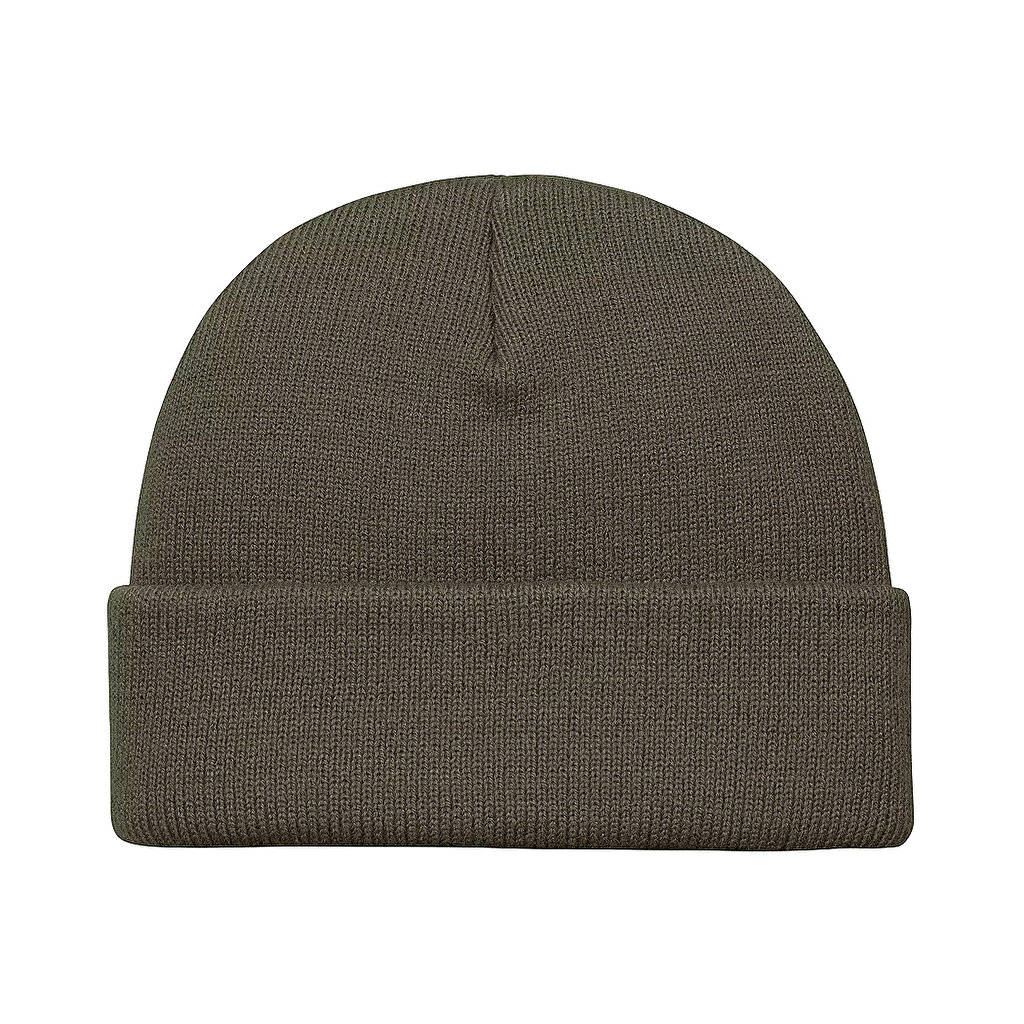 Carhartt WIP Stratus Hat Low, Cypress är stickad av akrylgarn i en stretchig ribbstickning som garanterar komfort och en passform som passar alla. Den är något lägre än klassikern Acrylig Short Watch-hat, men inte lika låg som en sotarmössa.