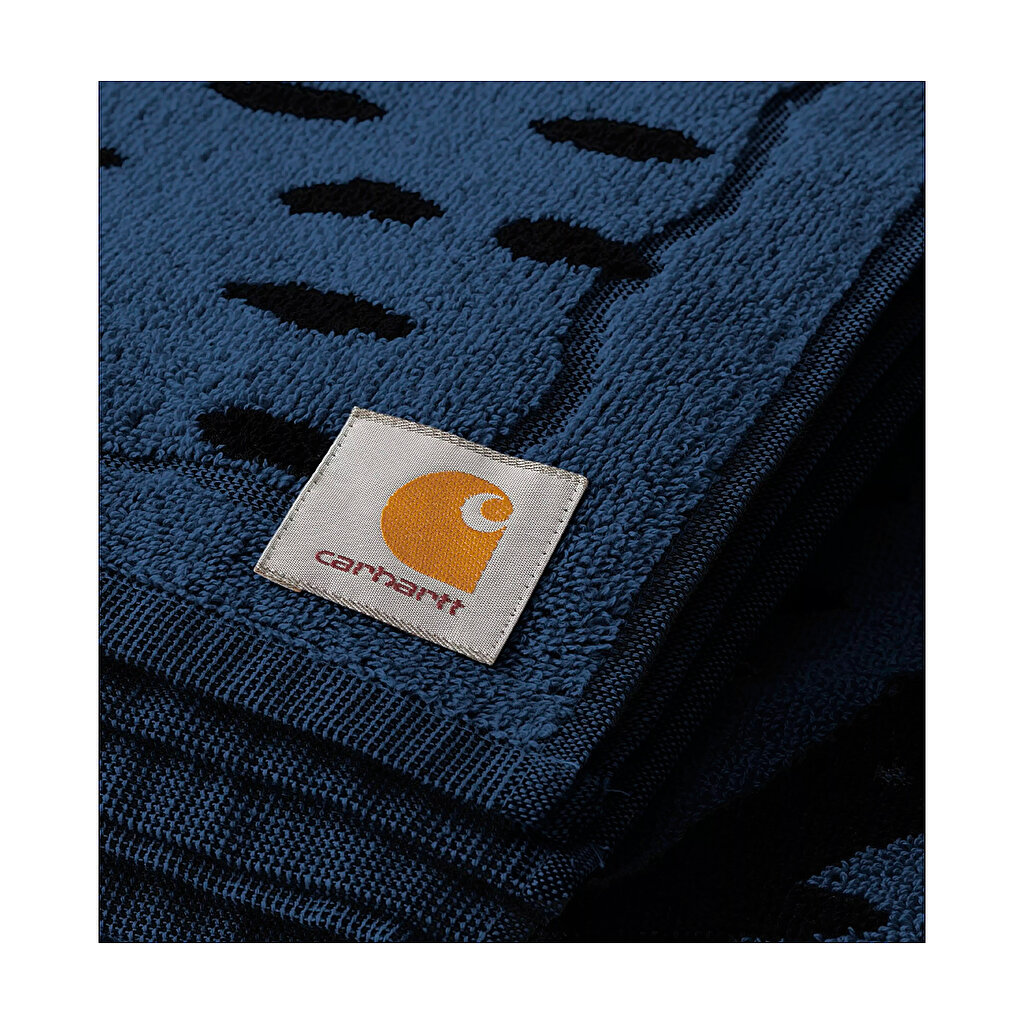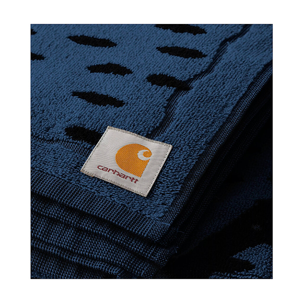 Handduken/filten pryds av ett invävt jacquardmotiv som ger djup och struktur i designen, medan en vävd Square Label sätter en diskret men tydlig signaturdetalj.