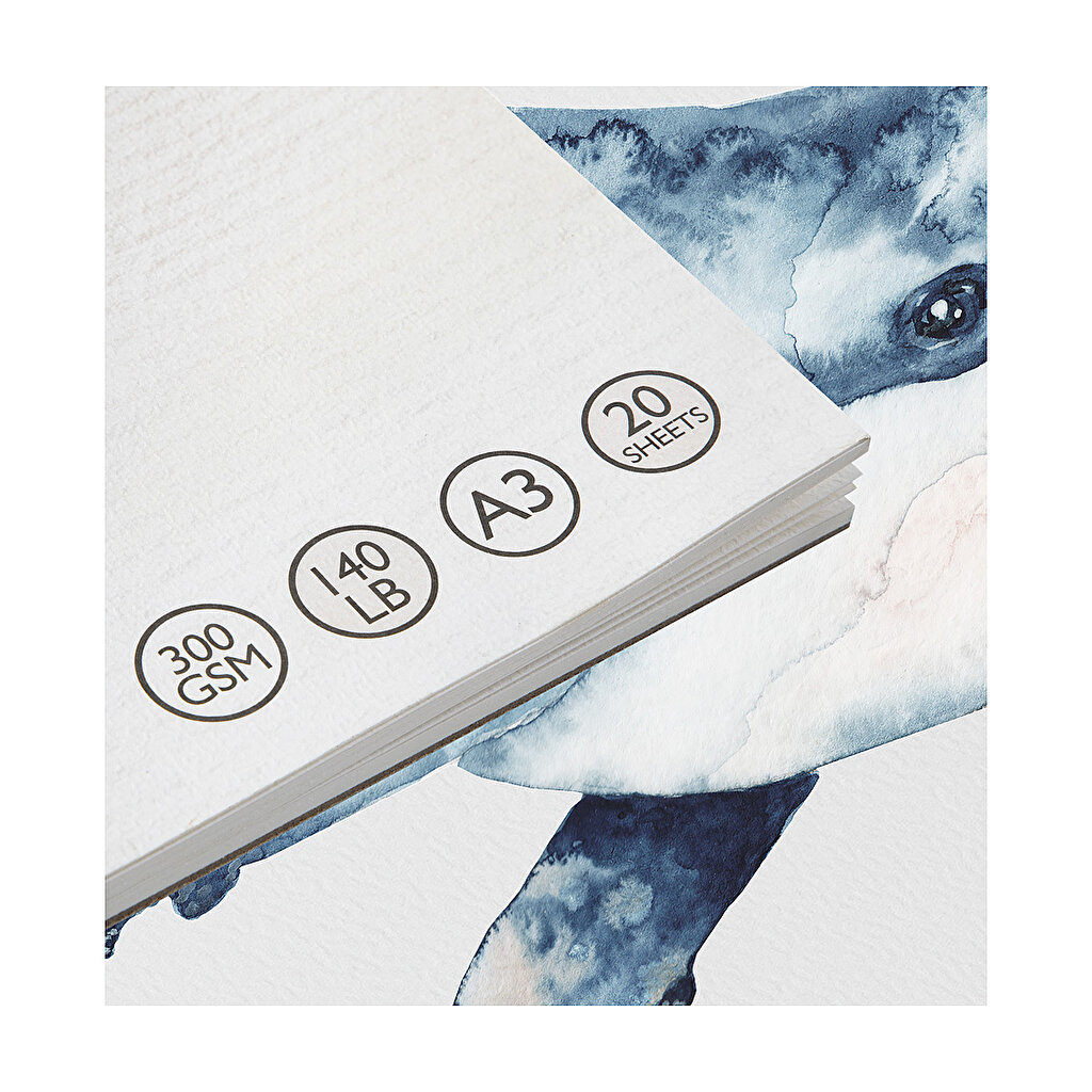 Akvarellblock A3, 20 sheets. Utforska kreativiteten med detta akvarellblock, designat för att ge dig den bästa upplevelsen när du arbetar med akvarellfärger. Blocket har ett A3 format, vilket ger gott om utrymme att skapa detaljerade och vackra konstverk. Med 20 sidor av högkvalitativt papper på 300gsm får du en stabil och hållbar yta som tål flera lager färg utan att böjas eller förlora sin struktur. Perfekt för både nybörjare och erfarna konstnärer.