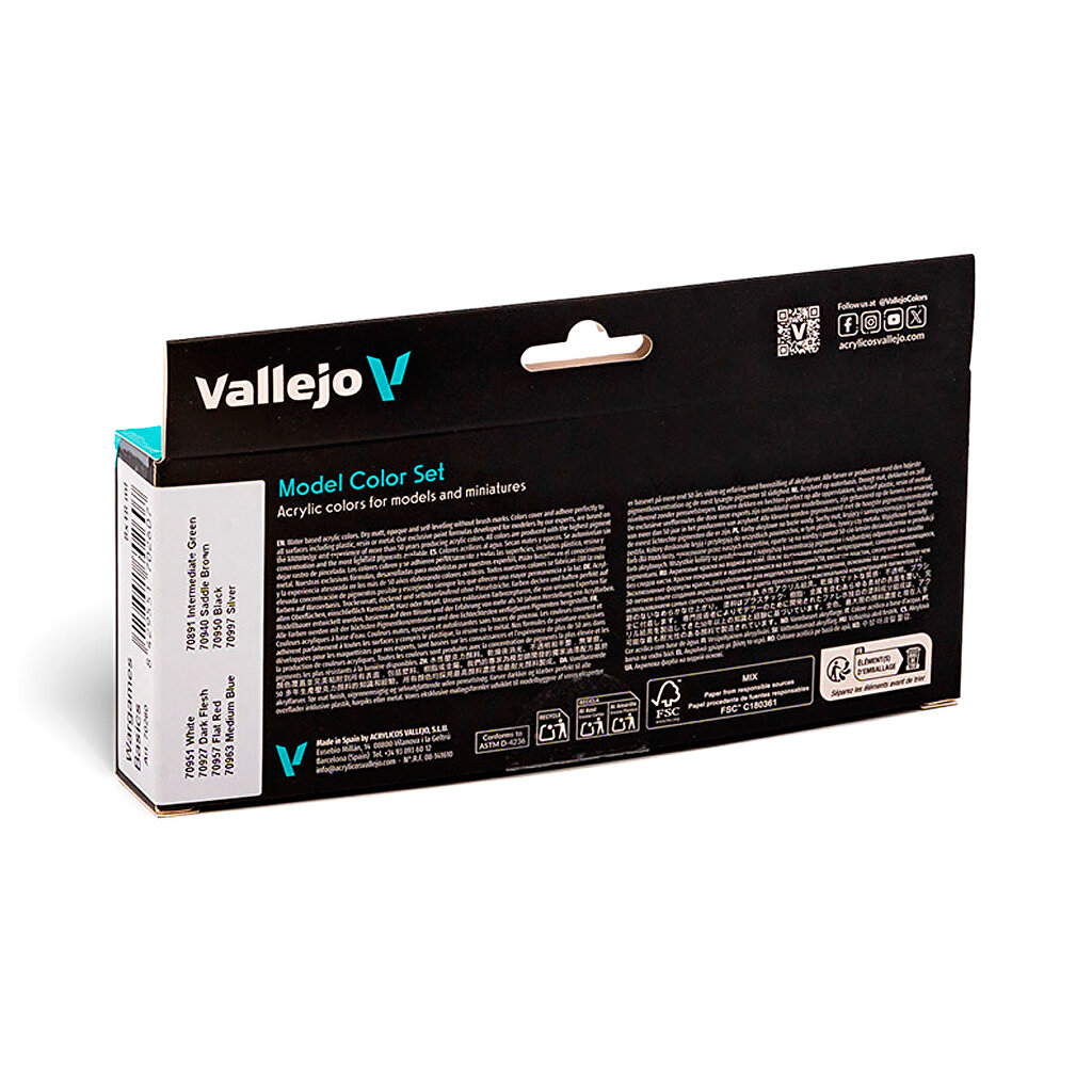 Vallejo Model Color Set Wargame Basics, colors covering ancient Egypt, through the years of Roman domination, the Middle Ages, to armed conflicts in the 19th century. This set with a diverse selection of colors for painting wargame miniatures from any era. Included are colors for painting skin, clothing and uniforms, as well as tools, equipment and weapons of the main characters in the most popular strategy games.