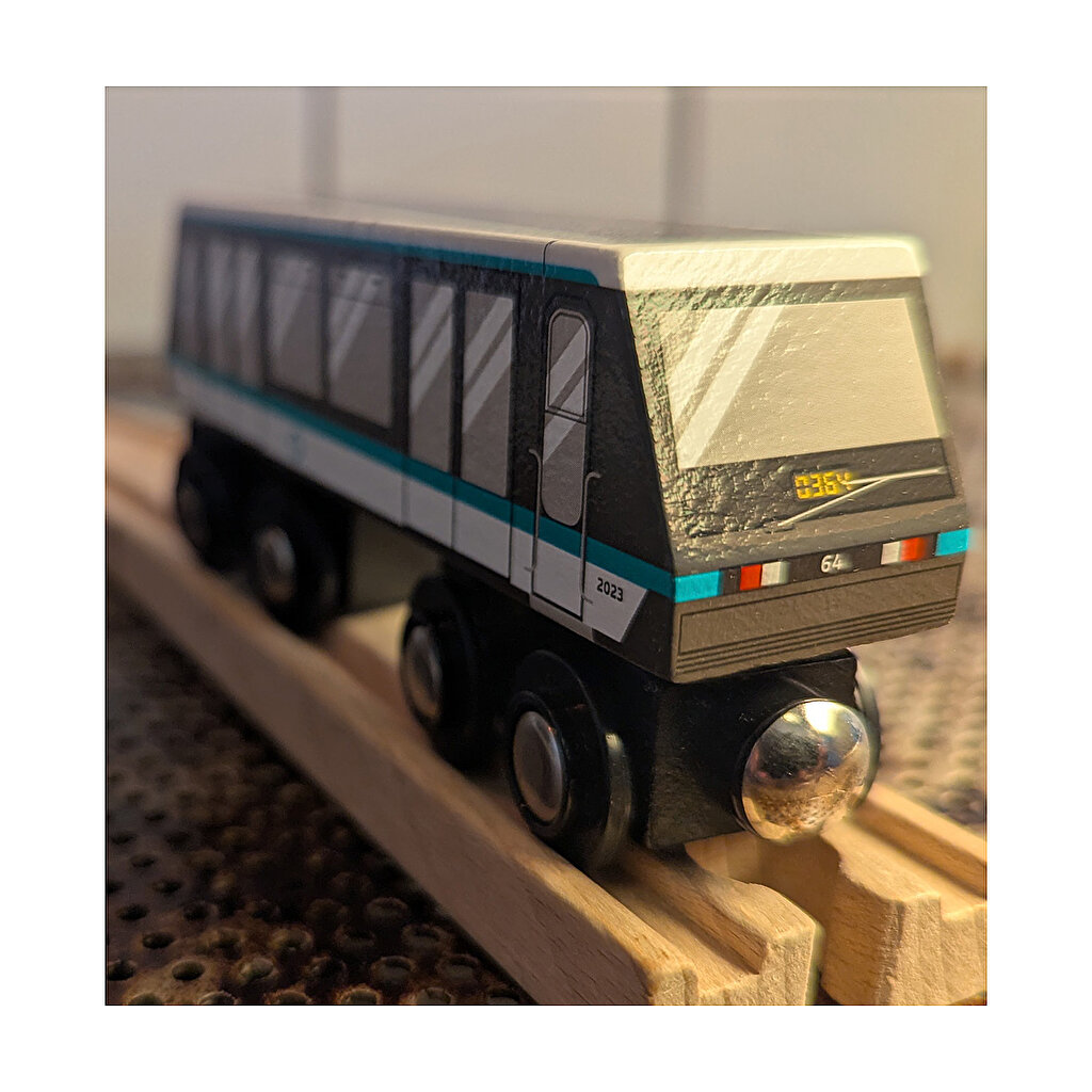 Discover a miniature version of the Paris Metro, made from sustainable wood. The set includes Mini Metro + 1 custom track piece and is compatible with all common wooden railway systems such as Brio, Ikea, and more. Magnetic connectors allow you to link as many trains as you like. Perfect for children ages 3 and up.