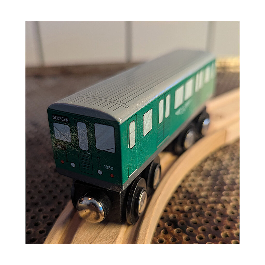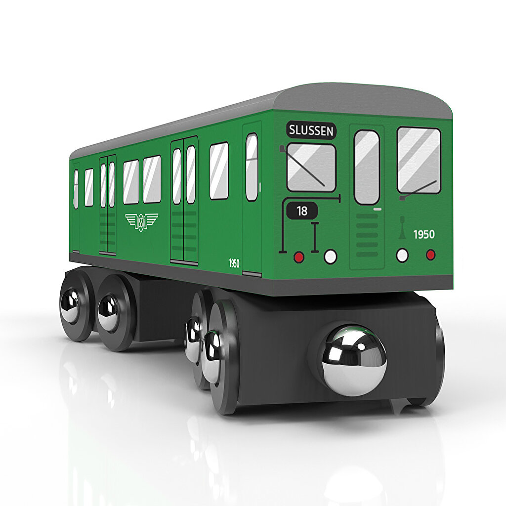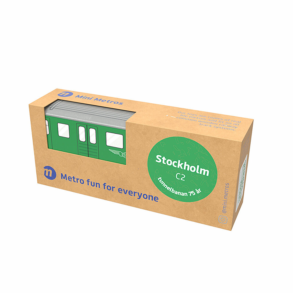 Discover a miniature version of the Stockholm Metro, made from sustainable wood. The set includes Mini Metro + 1 custom track piece and is compatible with all common wooden railway systems such as Brio, Ikea, and more. Magnetic connectors allow you to link as many trains as you like. Perfect for children ages 3 and up.