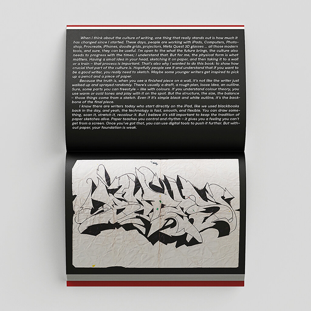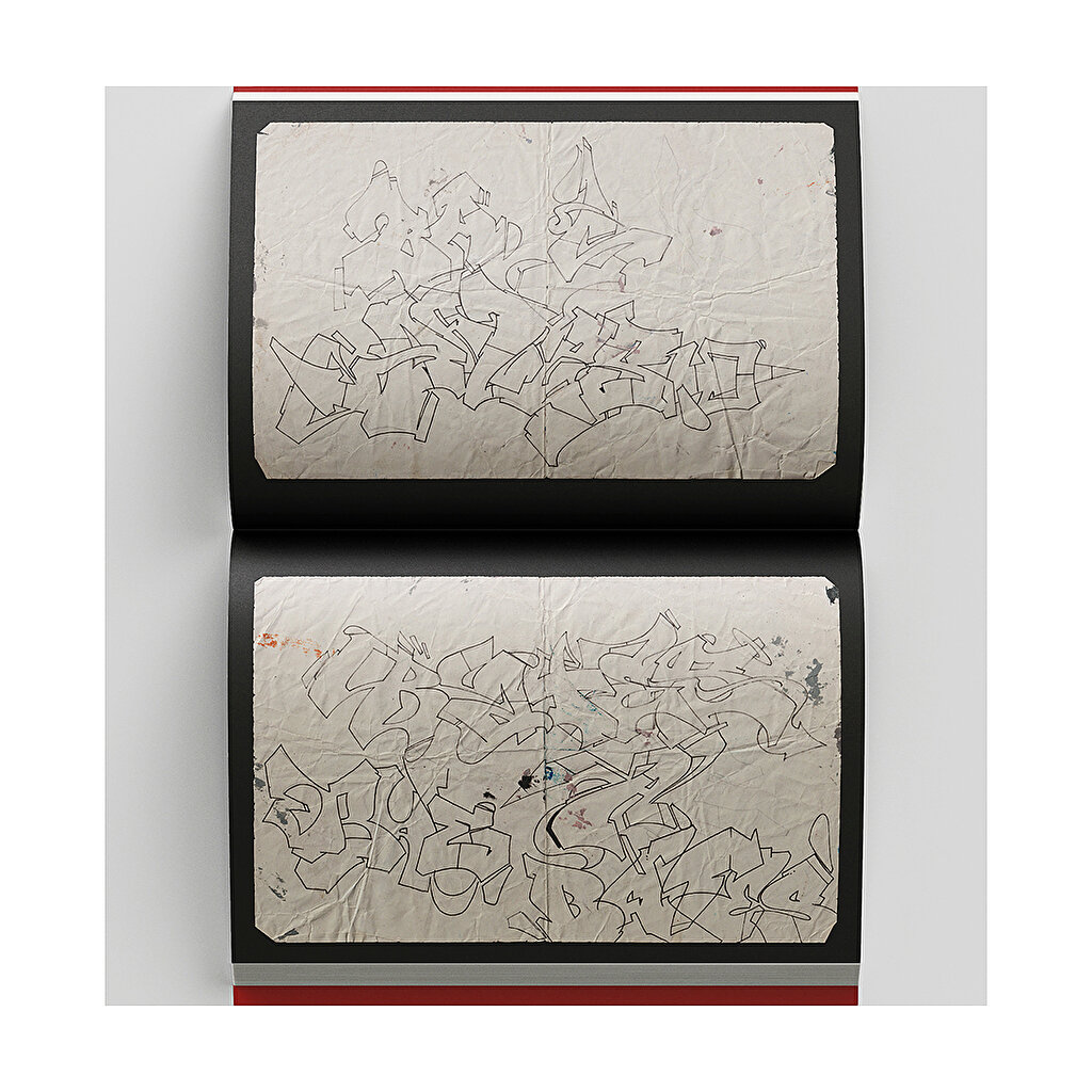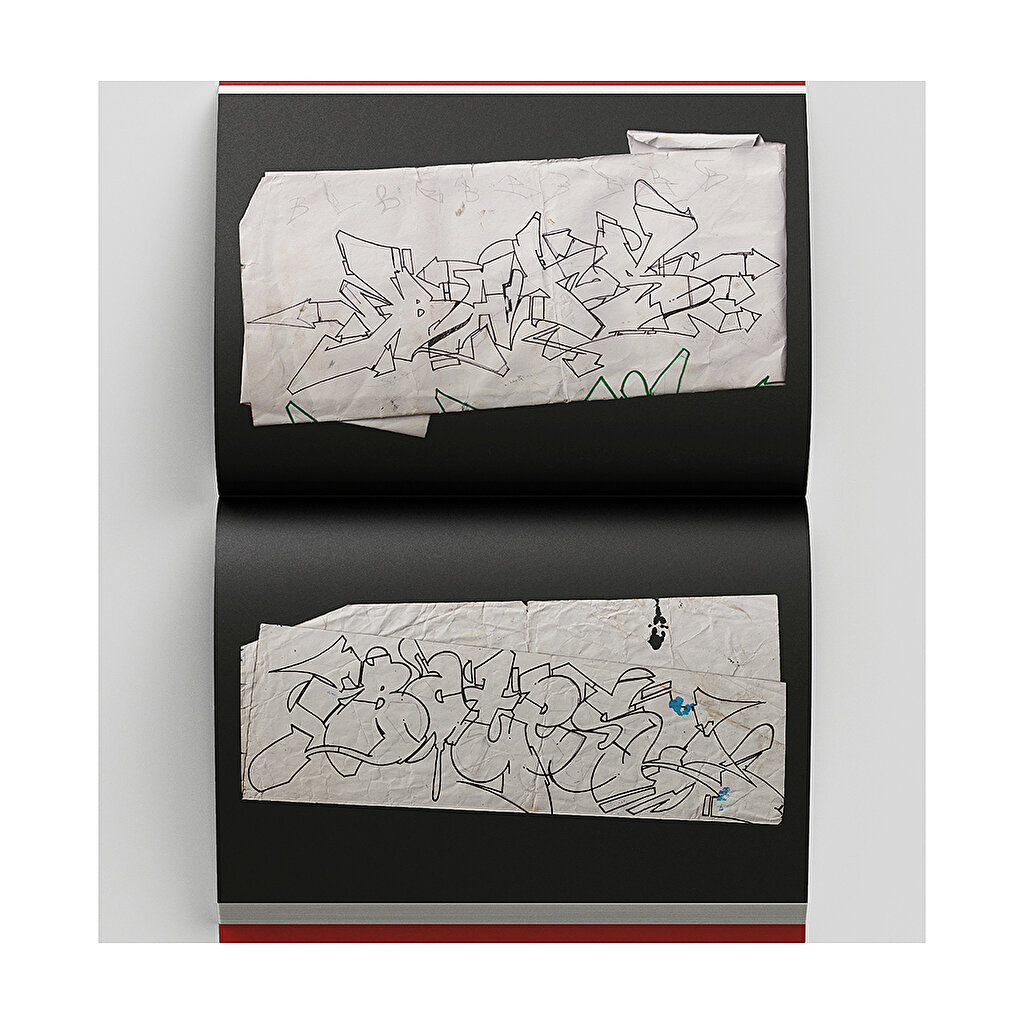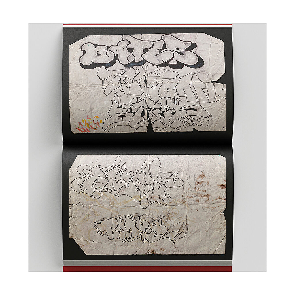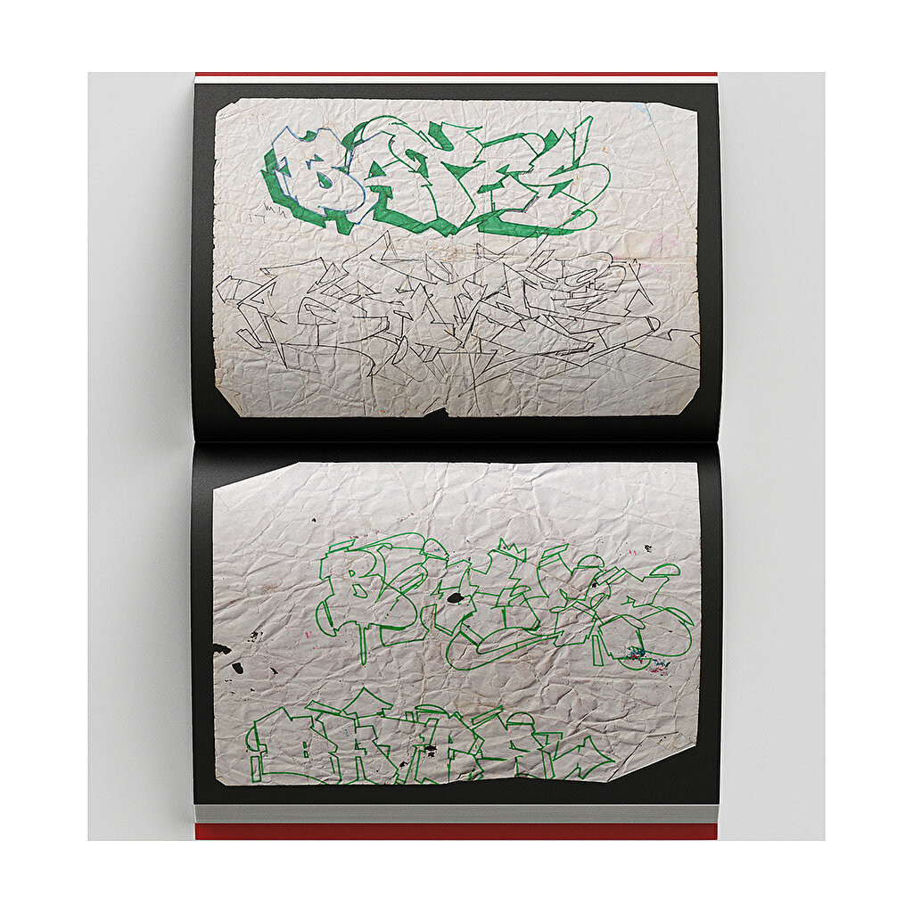 BATES is one of the world’s foremost style writers, known for his distinctive and perfect lettering. Here he offers something truly special: his own sketches. Raw, authentic and full of energy – with paint smudges, spray dust, quick notes, folded corners and everything that goes with a well-used blackbook. A unique insight into his working process and his uncompromising focus on style.