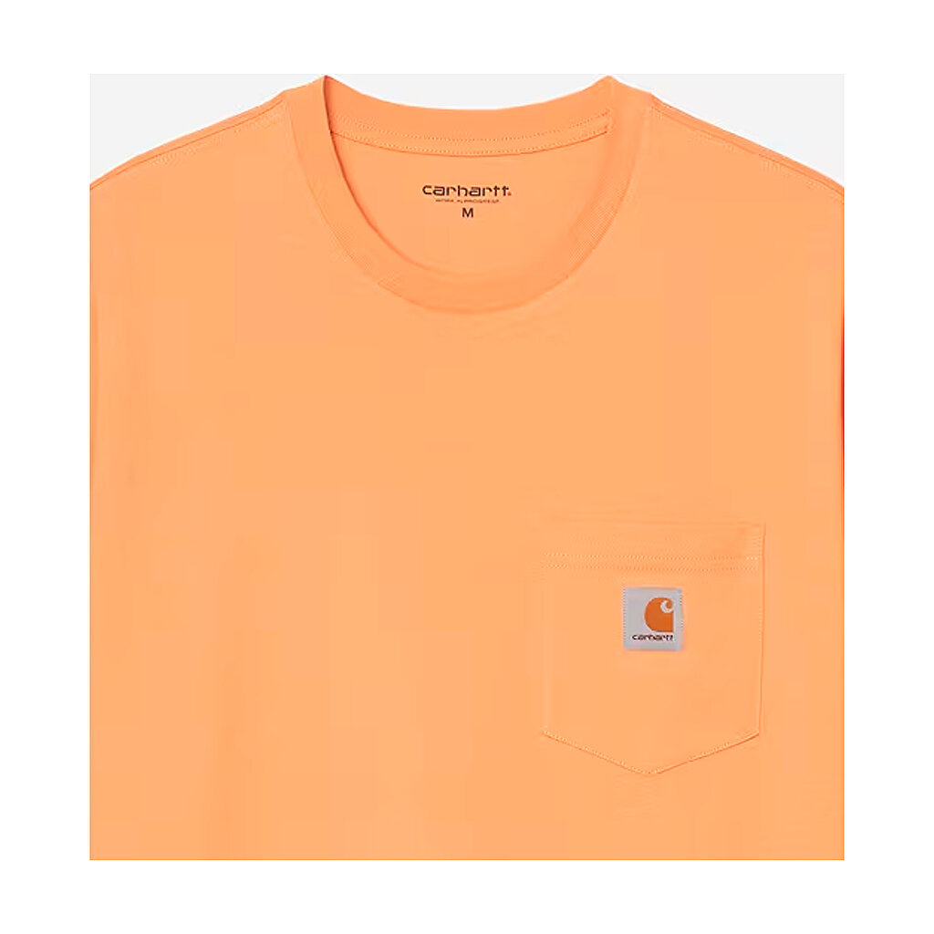 Carhartt WIP S/S Pocket T-Shirt, Gentle Orange, är en klassisk Carhartt t-shirt, tillverkad av 100% bomull med vävd label på bröstfickan.