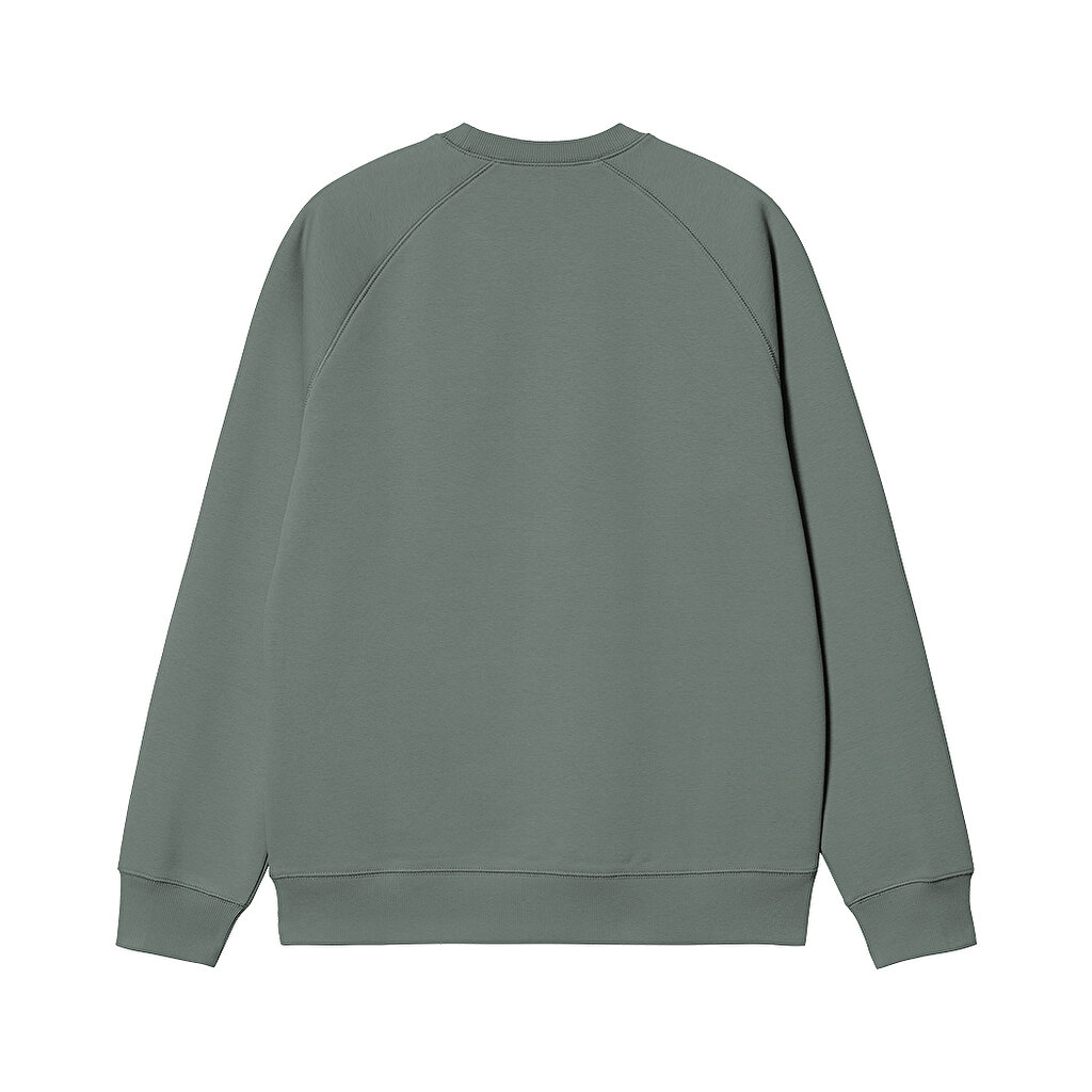 Carhartt WIP Chase Sweat, Velvet Green/Gold är tillverkad av 100% bomull med flatlocksömmar, raglanärmar och avslutas med en subtil logotyp på ärmen.