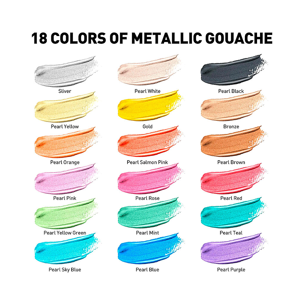 Himi Gouache Paint Set, 12ml/12colors. Gouache är en täckande färg som är vattentunn och torkar inom några minuter, så du kan arbeta snabbt. Kan användas på olika ytor som papper, kartong och trä. Varje gelékopp har en kapacitet på 30 ml med 12 st metalliska färger.