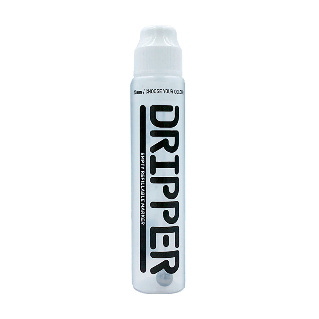 Dope Dripper Empty 10mm. Tom Dripper från Dope Cans. Den kan fyllas med olika färger och bläck. Dope Dripper har en fyllningskapacitet på 25 ml och är utrustad med en 10 mm pennspets.